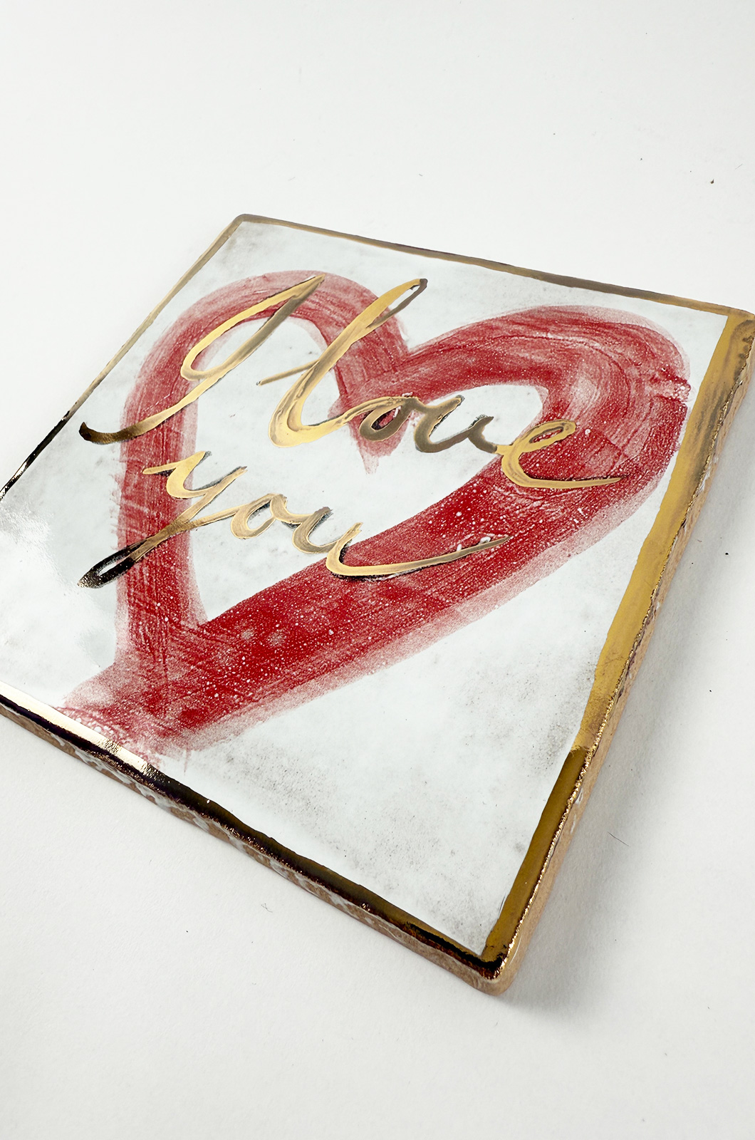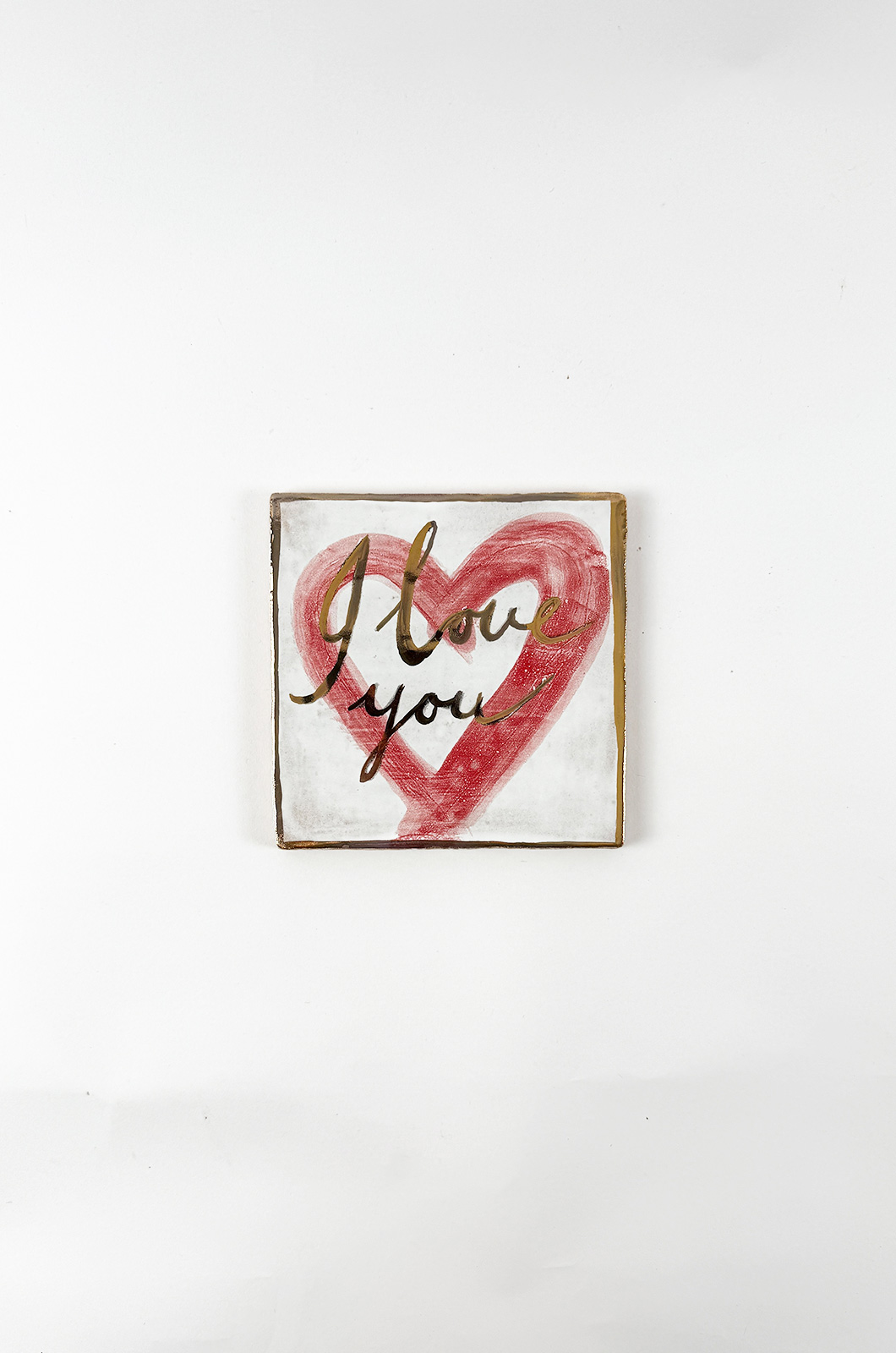 Handgemaakt I love you tegeltje met écht gouden details